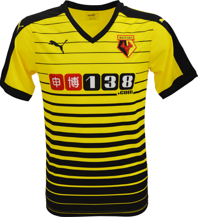 Für ihre Rückkehr in die Premier League wird Watford ein einzigartiges gelb / schwarzes Heimtrikot tragen, während das Watford Auswärts-Trikot simpel in Schwarz und Weiß gehalten ist.
