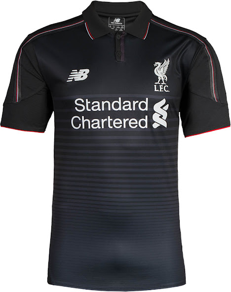 Das neue Stoke City 15-16 Trikot, das zum ersten Mal von New Balance hergestellt wird, kommt mit den klassischen roten und weißen Streifen, während das neue Stoke Auswärts-Trikot schwarz mit einer grünen Schärpe ist.