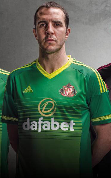 Das Sunderland 15-16 Trikot ist sauber, und kommt mit den traditionellen roten und weißen Streifen, während das Sunderland Auswärts-Trikot grün mit einem Farbverlauf zu Gelb ist.