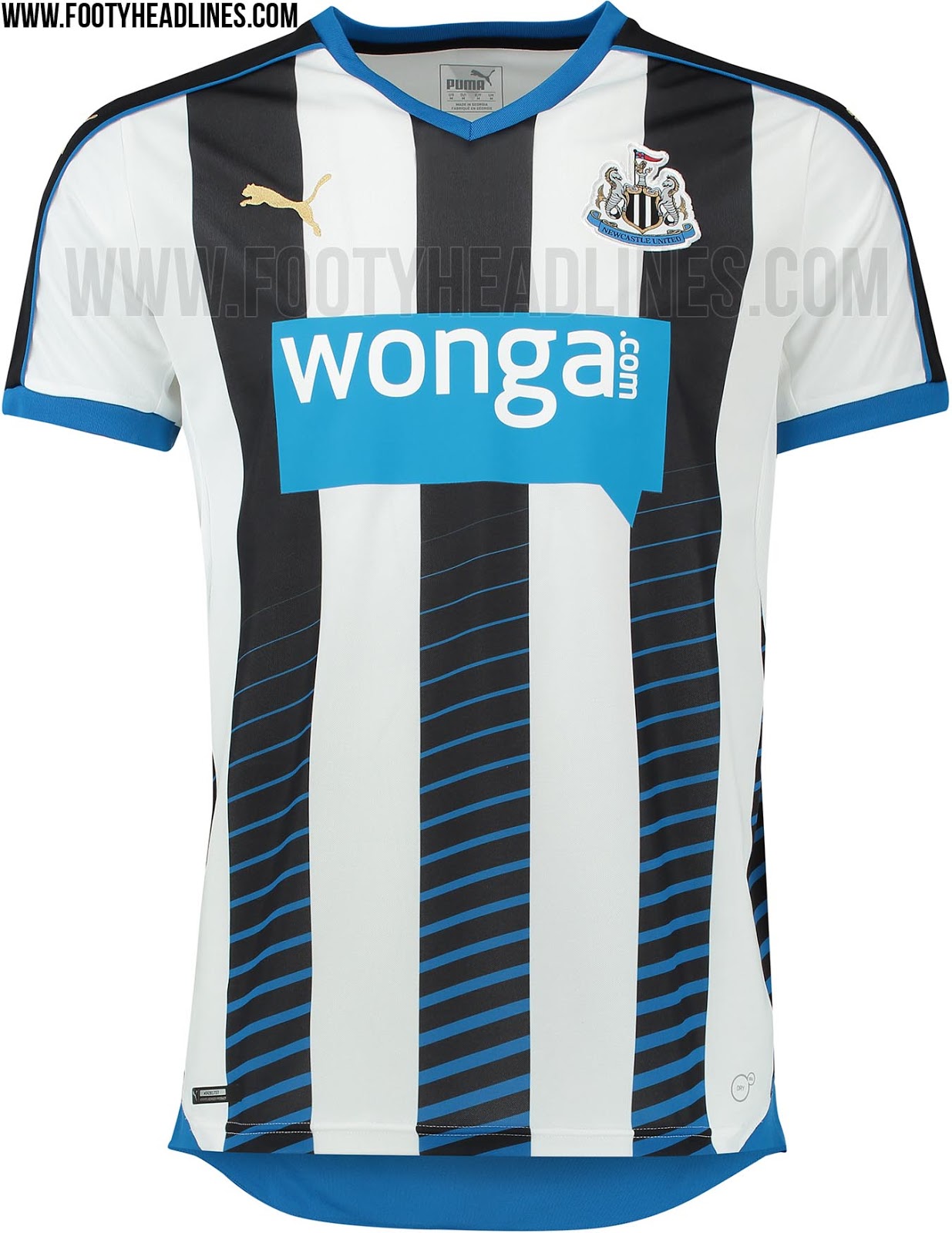 Während das schwarz / weiß gestreifte Newcastle 15-16 Heimtrikot und das hellgraue Auswärts-Trikot mit blauen Akzenten kommen, ist das Newcastle United 15-16 Ausweich-Trikot dunkelblau mit einer pink / weißen Schärpe.