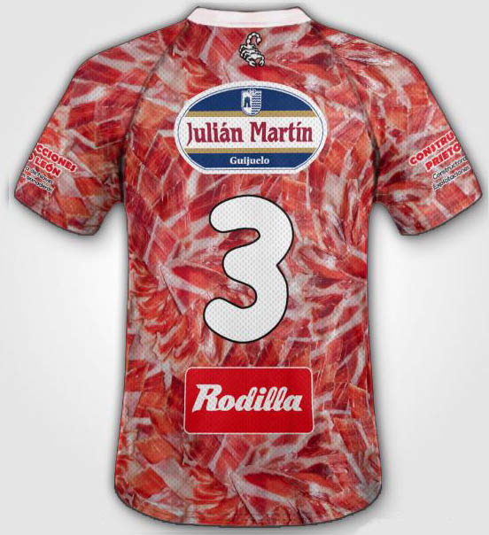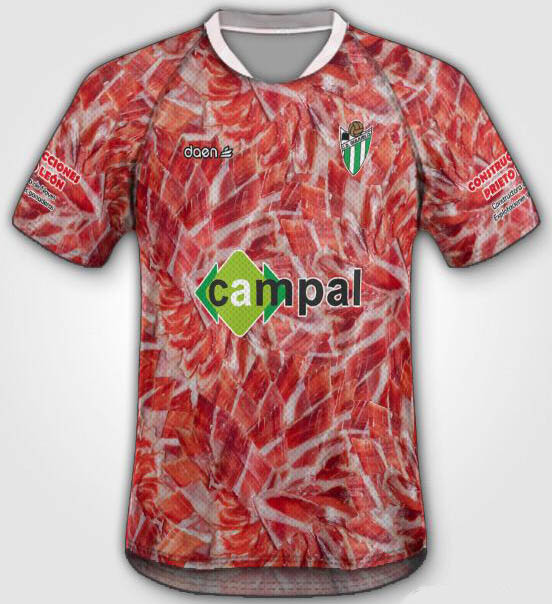 Die spanischen Drittligisten haben die ausgefallensten Trikots. Nach den Bier-, Brokkoli- und Smokingtrikots der letzten Spielzeiten, hat das spanische Segunda División B Team CD Guijuelo ihre neuen 15-16 Trikots enthüllt, die vom berühmten Jamón Ibérico (Ibérico-Schinken) von Guijuelo inspiriert wurden.