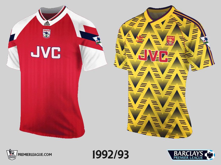Das Arsenal 1992-93 Heimtrikot wurde von Adidas hergestellt und wies immer noch das alte Vereinswappen auf, interessanterweise bereits in einer farblich veränderten Version. Das Arsenal 92-93 Auswärts-Trikot, das ein kultiges Design hat, war gelb mit einem markanten Druck auf dem gesamten Trikot.