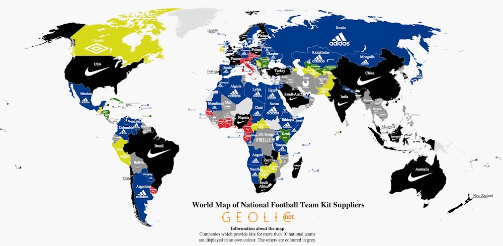 Das ist die Weltkarte der Nationalmannschaftsausrüster.