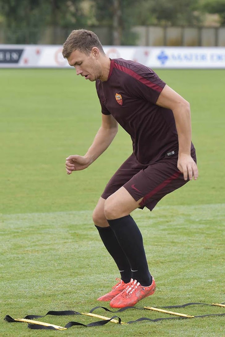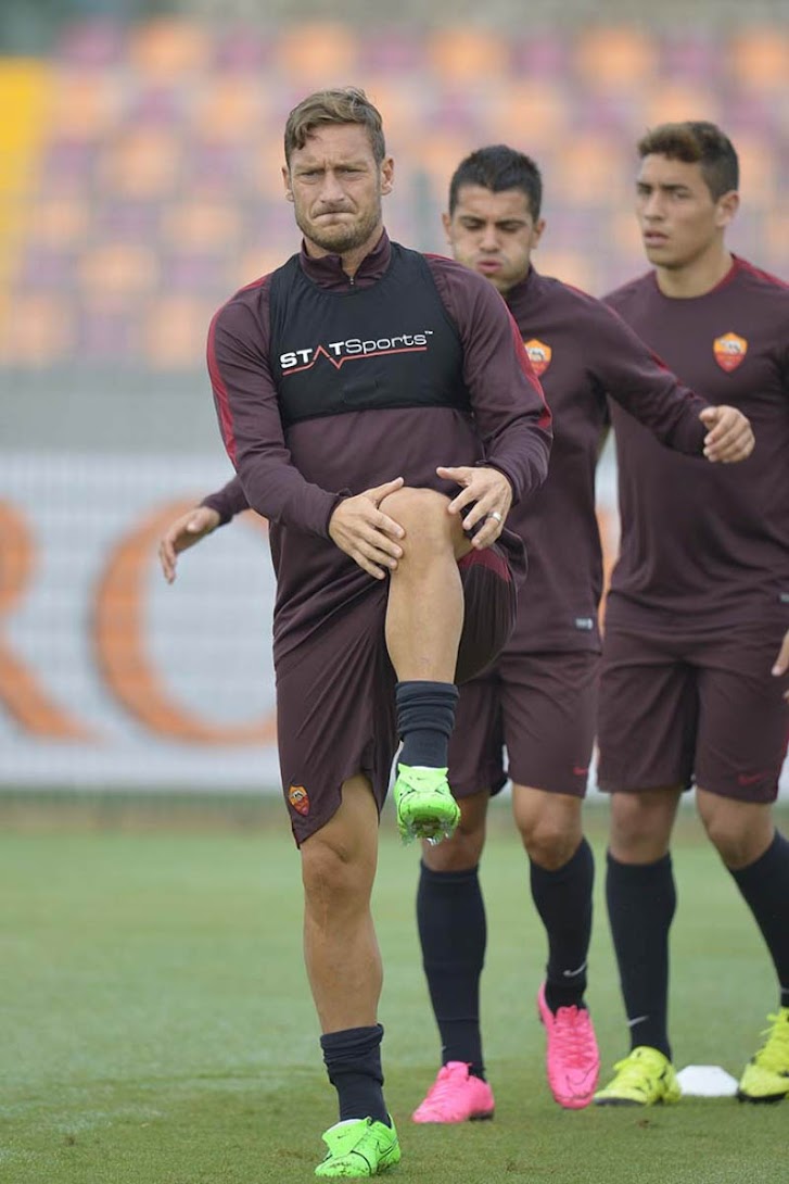 Währenddessen schnürte Edin Dzeko alte Adidas F50 Adizero Fußballschuhe, während Francesco Totti einen angepassten Nike Tiempo Legend V Schuh mit seiner typischen überstehenden Zunge trug.