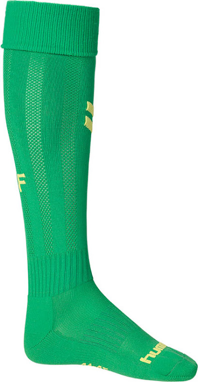 Hellgrüne Hosen und Stutzen mit gelben Zeichen komplettieren das frische Design des neuen Brøndby Trikots.