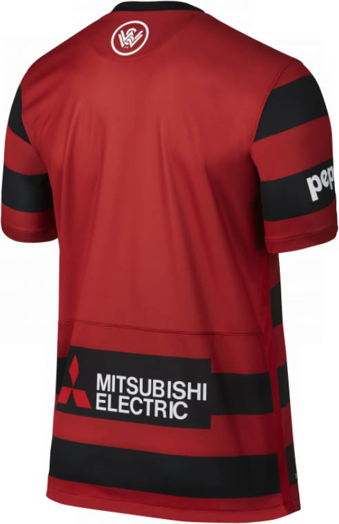 Es hat einen modernen Rundkragen und eine weiße Version des bekannten Wanderers Wappens auf der Rückseite unterhalb des Kragens. Interessanterweise ist der Swoosh zentriert platziert worden, während sich ein goldener Stern über Western Sydneys Wappen befindet, um ihren AFC Champions League Titel aus dem Jahre 2014 zu ehren.