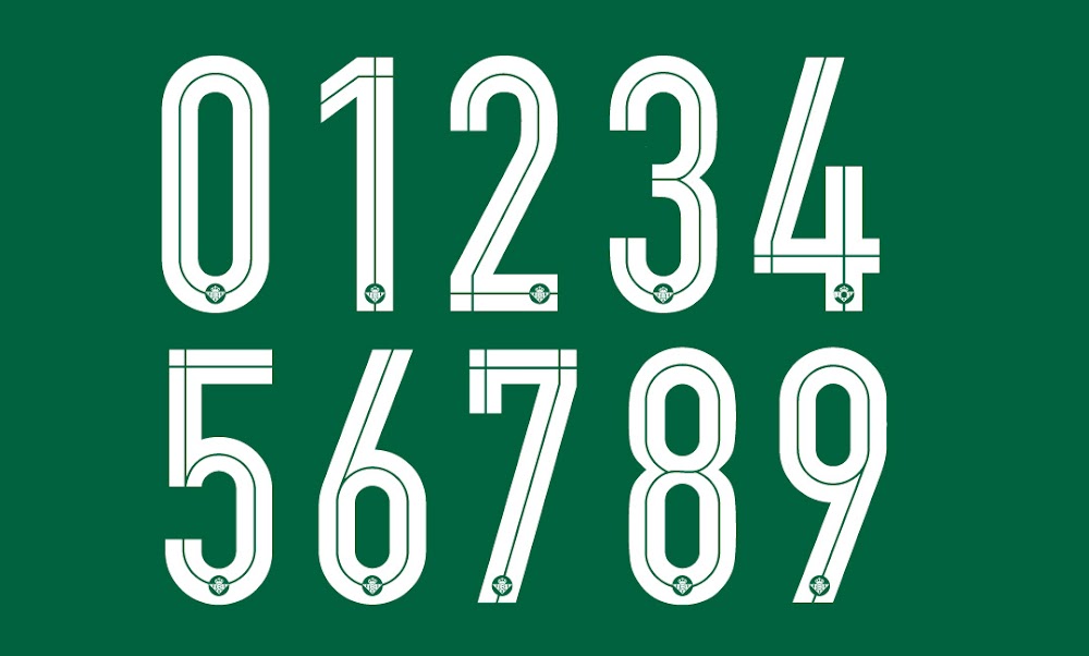 Die neuen Real Betis 15-16 Trikot-Nummern kennzeichnen sich durch ein eckiges Design mit feinen Linien, die in den Nummern verlaufen. Eine einfarbige Version des bekannten Real Betis Wappens ist innerhalb der Adidas Betis 2015-2016 Trikot-Nummern platziert worden.