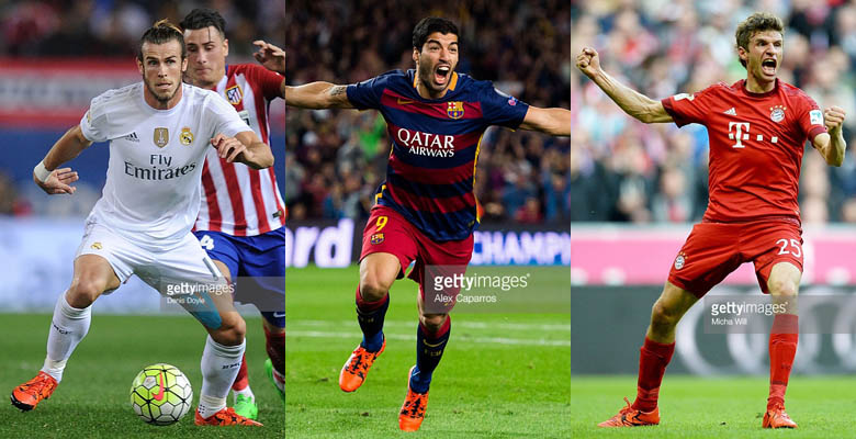 Gareth Bale (Adidas X 15.1 Synthetik), Luis Suarez (Adidas X 15+ Primeknit), Thomas Müller (Adidas X 15.1 Leder).