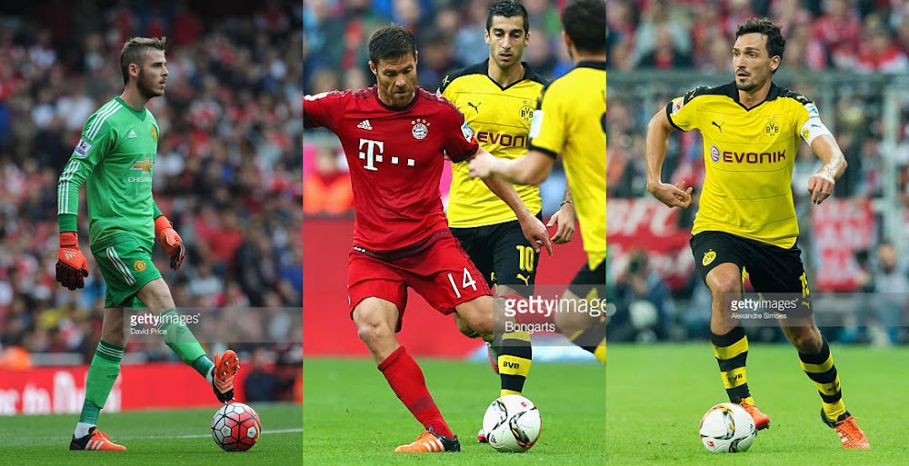David de Gea (Adidas Ace 15+ Primeknit), Xabi Alonso (Adidas Ace 15.1 Leder), Mats Hummels (Adidas Ace 15.1 Synthetik).