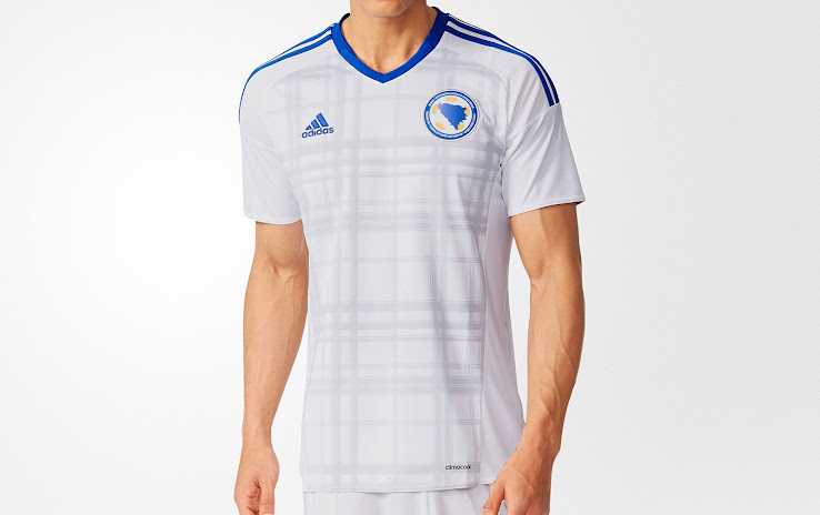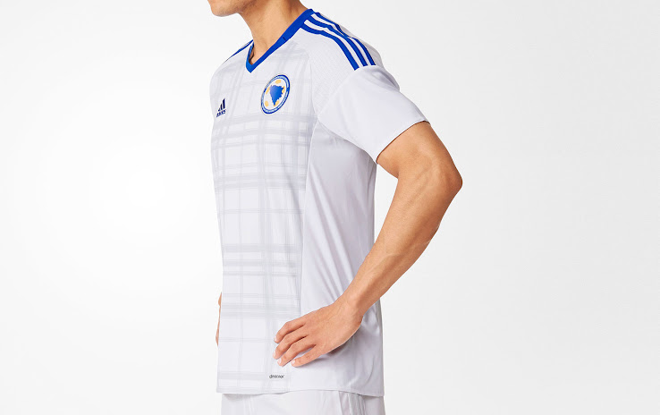 Das Bosnien EM 2016 Trikot, das von Adidas hergestellt wird und am 12. November 2015 enthüllt wurde, weist ein einzigartiges Design auf. Verglichen mit dem ungewöhnlichen blau / gelben Bosnien 2016 Heimtrikot ist das Bosnien Auswärtstrikot, das in Weiß und Blau zu überzeugen weiß, traditioneller.