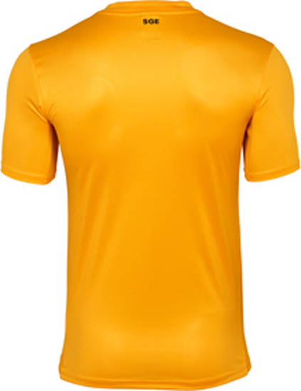 Das neue Eintracht Frankfurt 2015-16 Trikot, das die frische Hauptfarbe Gelb mit schwarzen Applikationen kombiniert, wurde für Spiele hergestellt, bei denen sowohl Heim- als auch Auswärtstrikot aufgrund von zu vielen Ähnlichkeiten mit dem gegnerischen Trikot nicht verwendet werden können.