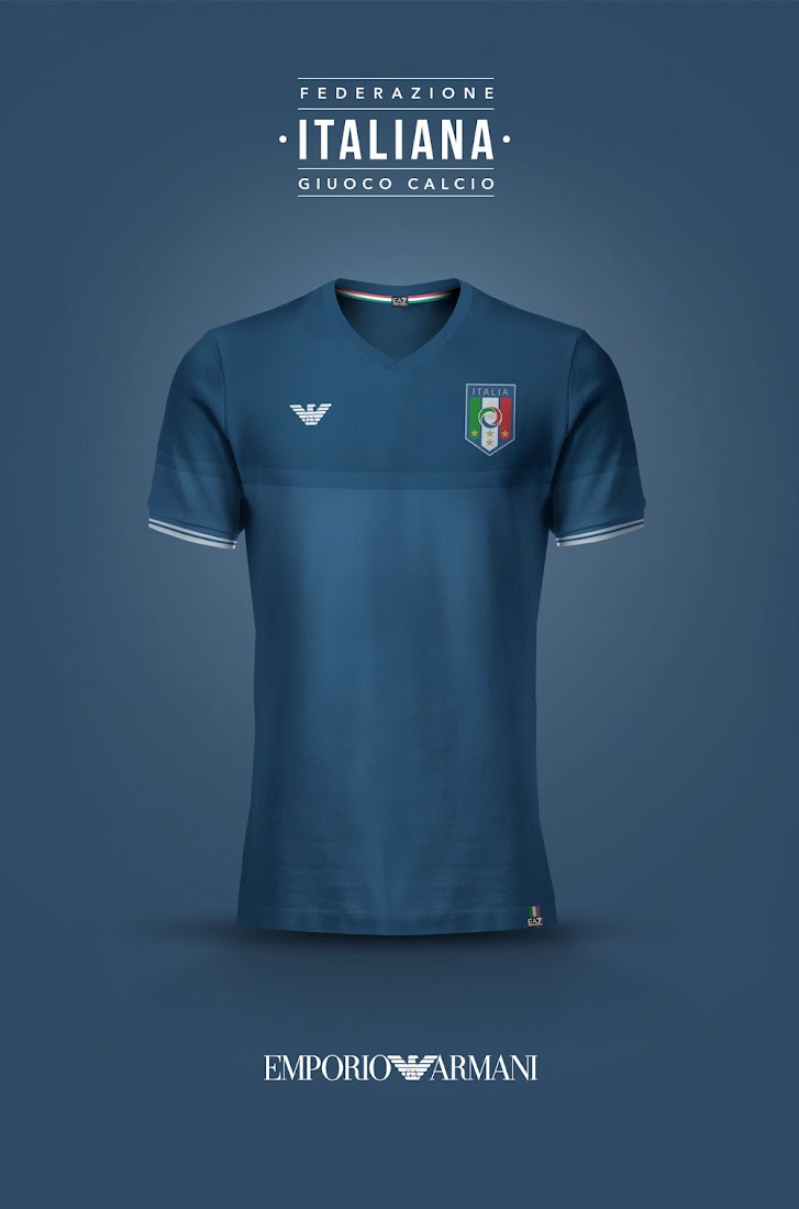Hier sind die interessanten Trikots für Nationalmannschaften von berühmten Modehäusern, entworfen von Emilio.