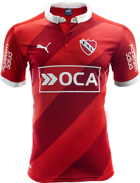 Puma kombiniert das neue Independiente 2016 Heimtrikot mit einem klassischen weißen Polokragen, um das auffällige diagonale Streifendesign aufzufrischen. Tatsächlich basiert Independientes 2016 Trikot auf dem selben Template wie einige Puma 2014-15 Trikots wie das Italien WM 2014 Trikot.