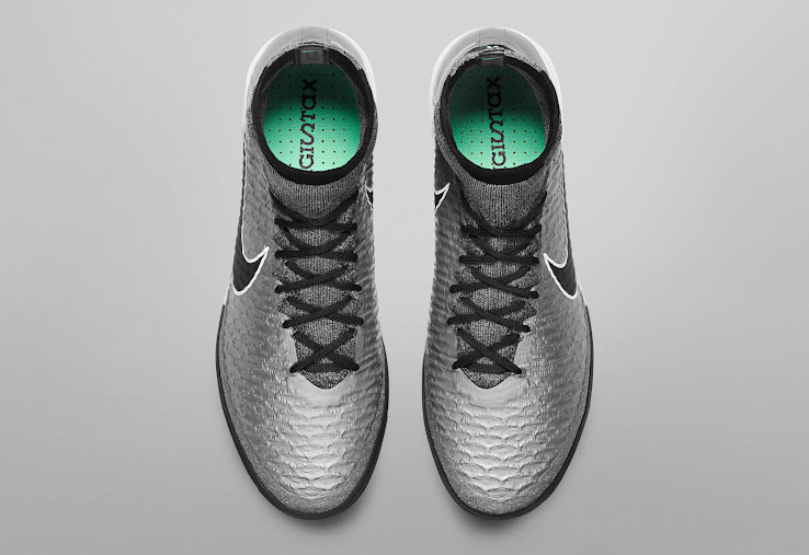 Der Nike MagistaX, der im Sommer 2015 eingeführt wurde, bringt das Design und die Technologien der 2014 Nike Magista Obra Fußballschuhe auf das Kleinfeld. Die silbernen Nike MagistaX Proximo Schuhe, die als Indoor (IN) und Turf (TF) Version erhältlich ist, zeichnen sich durch ein Flyknit-NikeSkin Obermaterial und eine innovative Lunarlon Zwischensohle aus.