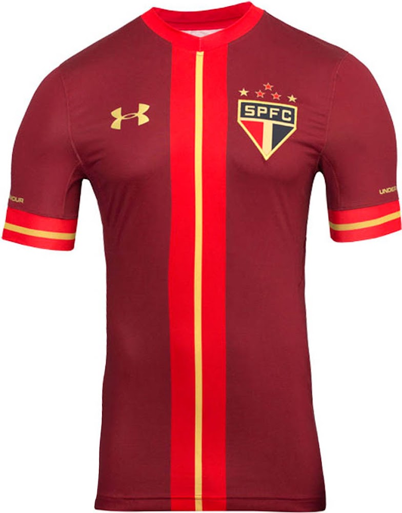 Das neue Under Armour Sao Paulo 2015-2016 Ausweich-Trikot, das am 18. Oktober 2015 im Série A Spiel gegen Vasco da Gama debütiert werden wird, hat ein kultiges Design in Burgunderrot und Rot. Es ist am 6. Oktober offiziell veröffentlicht worden.