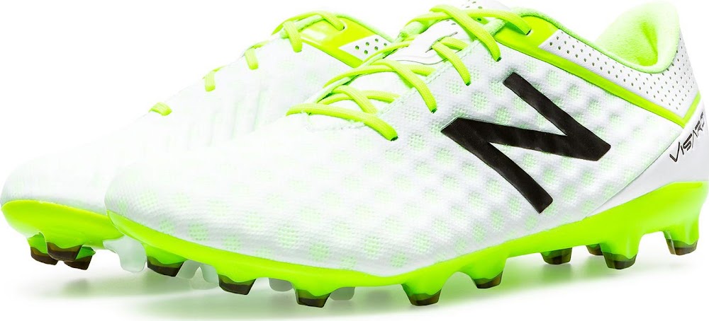 Der weiß / schwarz / gelbe New Balance Visaro 2016 Schuh kostet gleich viel wie alle vorherigen Farbvarianten (180 Euro) und ist ab heute als FG (Naturrasen) und SG (tiefer Naturrasen) Version in verschiedenen Breiten (Standard, Breit) erhältlich.