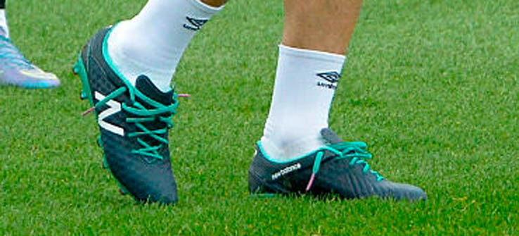 Mauro Zarate lief in einer unveränderten Version der New Balance Visaro Schuhe auf. Der New Balance Visaro, der eine Honigwabenstruktur mit einem externen Heel Counter und einer traditionellen Stollenanordnung kombiniert, ist für Spieler, die Chancen kreieren.