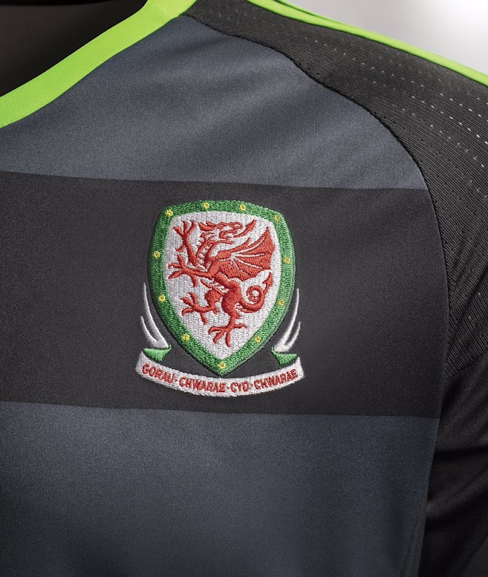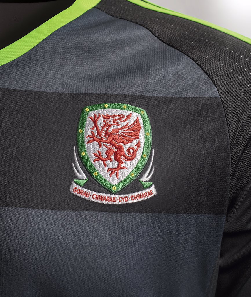 Das neue Adidas Wales EM 2016 Trikot, das heute offiziell veröffentlicht wurde, kombiniert zwei Grautöne mit auffälligen grünen Applikationen, um ein gewagtes Statement abzugeben.
