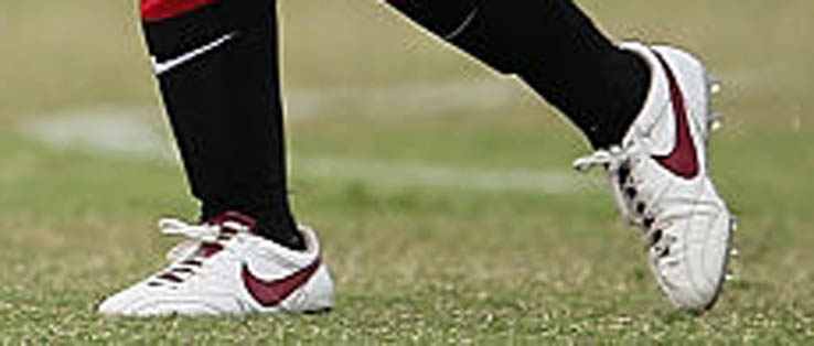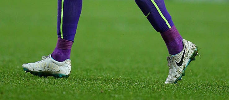 Johnnie Jackson von Charlton Athletic hat nicht nur einen alten und eingestellten Fußballschuh getragen (Nike CTR Maestri III), seine Edition der reflektierenden, weißen Nike CTR Maestri III Schuhe hat auch ein äußerst merkwürdiges Logo auf der Außenseite, das einem Swoosh ähnelt und nicht danach aussieht, als hätte er es selbst hinzugefügt... (seine Schuhe wiesen wenige Wochen zuvor einen normalen Swoosh auf [zweites Bild]).