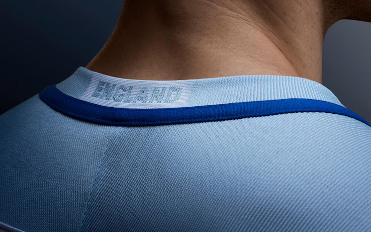 Das neue England 2016 Trikot, das den kultigen weißen England Trikots der Vergangenheit treu bleibt, führt neue Designelemente in Hellblau ein. Während der Nike Swoosh und die Löwen innerhalb des Wappens des Fußballverbands königsblau sind, sind eisblaue Details in Form einer von Streifen auf den Ärmeln vorhanden - ein wiederkehrendes Thema bei Nikes Copa America und EM 2016 Trikots. Königsblaue Linien verlaufen auf den Seiten und den Ärmeln des England Trikots sowie um den hinteren Teil des Kragens herum.