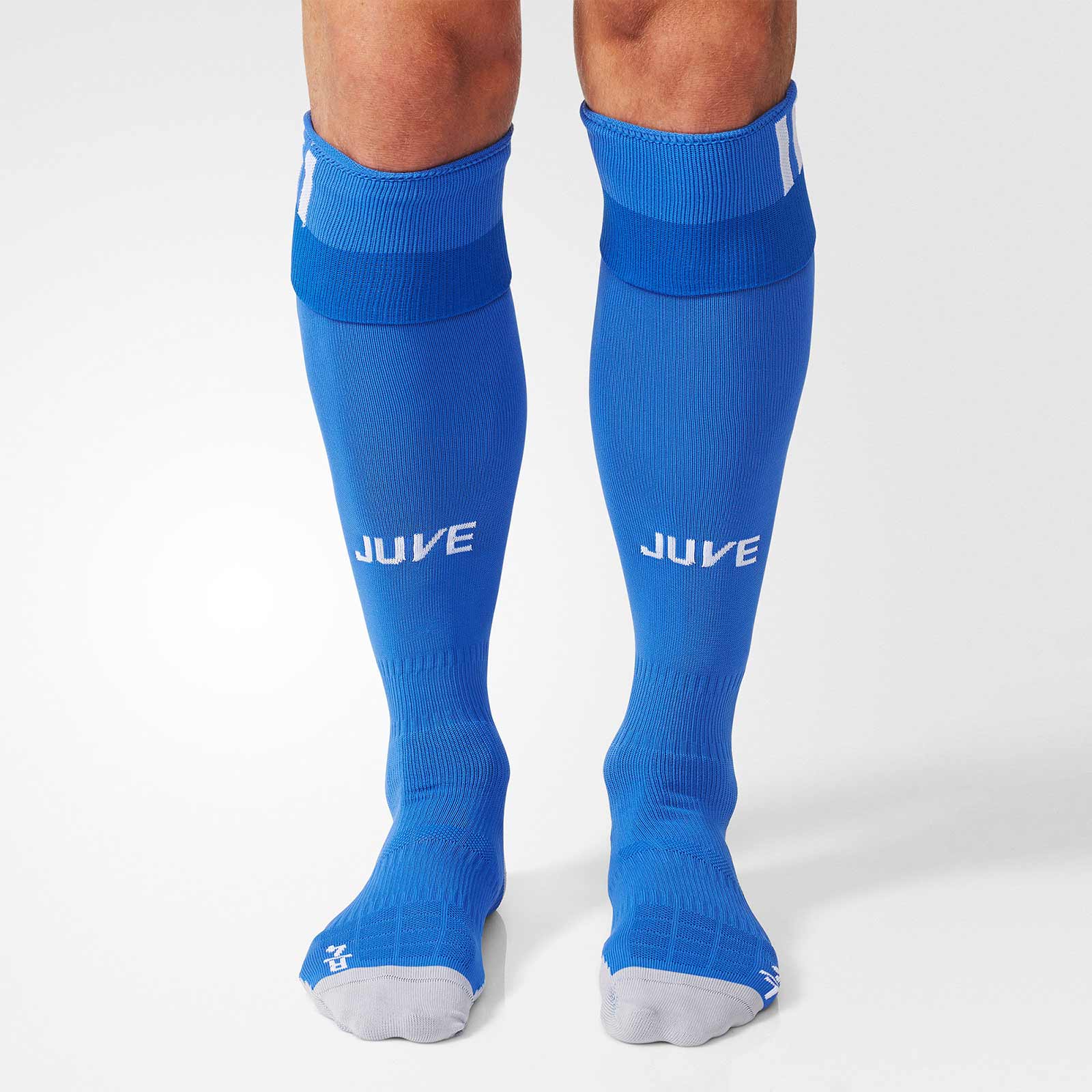 Die Ärmel des neuen Juventus 2016-2017 Trikots sind einfarbig blau mit schwarz-weißen Ärmelenden, während der Kragen, der auf Adidas normalem Rundkragen-Stil für die neue Saison 2016-17 beruht, weiß mit schwarzen und gelben Details ist. Das Jeep-Sponsorenlogo ist einfarbig in Weiß auf die Vorderseite des Adidas Juventus 2016-17 Trikots gedruckt und man verzichtet auf den umgebenden Kasten, der vom Juventus-Heimtrikot bekannt ist.