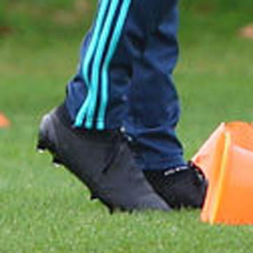 Nahaufnahmen von Jose Mourinhos Blackout Adidas X Skeleton Fußballschuhen.