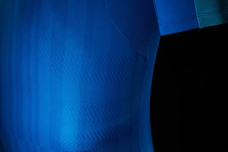 Das Slowakei EM 2016 Trikot, wenn auch in dem traditionellen Blau gehalten, ist eine neue Interpretation des kultigen Designs, da es mit einer helleren, blaugrünen Farbe kombiniert wird. Der breite Streifen, der auf den Schultern und Ärmeln von den Enden zum Kragen verläuft, wurde entworfen, um in diesem Bereich Nähte entfernen zu können und mehr Bewegungsfreiheit zu ermöglichen.