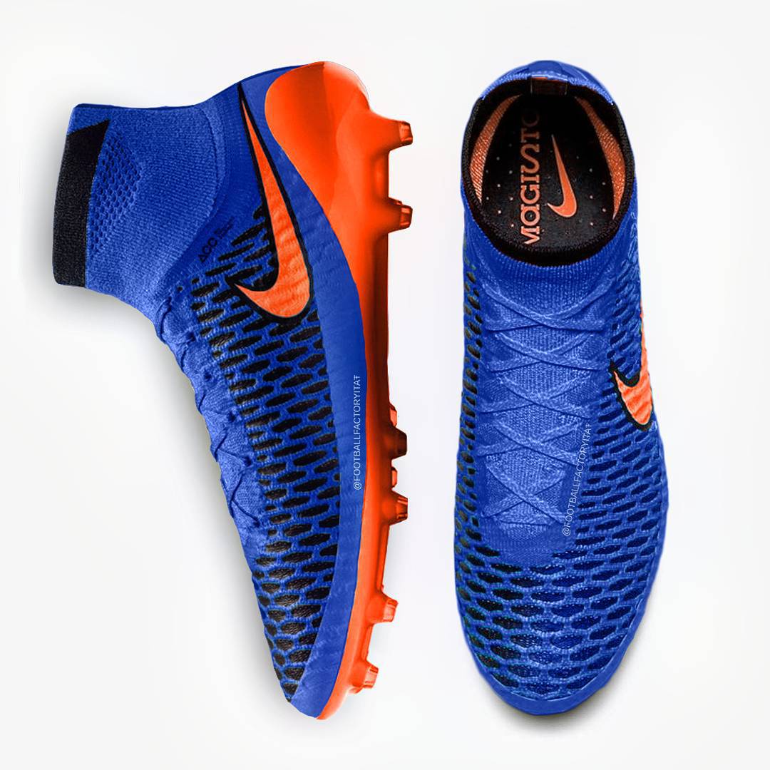Der vierte Nike Magista Obra Konzeptschuh von FootballFactory mit der Bezeichnung Nike Magista Obra "Hi-Lagoon" kombiniert nur die Farben Dunkelblau, Schwarz und Orange.