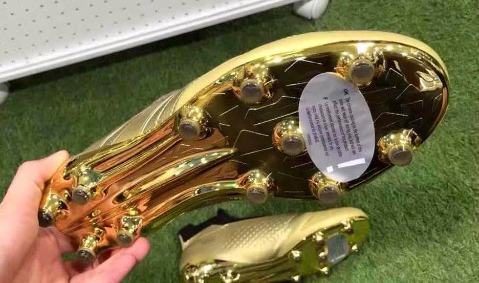 Update #2: Es wurde verraten, dass der umwerfende Chrom-Effekt der gold-schwarzen Adidas Space Craft Schuhe durch das Spielen verloren geht. Adidas fügte dieses Mal sogar einen Sticker auf der Außensohle hinzu, der das Problem beschreibt. Es steht geschrieben: „The chrome finish of this boot will wear off during play. It will not affect the performance of the product.“ Schau dir unterhalb den ursprünglichen Artikel über dieses bekannte Problem an.