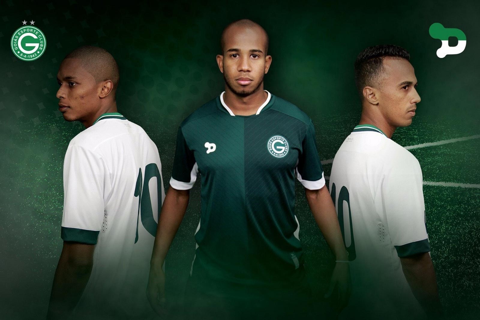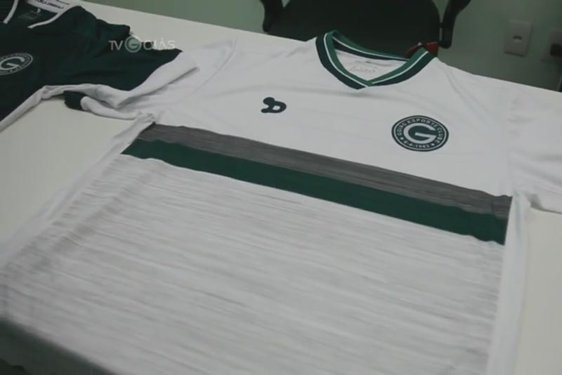 Das Goiás 2016 Heim-Trikot hat ein tonales geteiltes Design in Grün, wobei weiße Akzente auf dem Kragen, an den Ärmelenden und den Seiten des Trikots vorhanden sind. Das Goias 2016 Auswärts-Trikot ist weiß mit Querstreifen auf der Vorderseite.