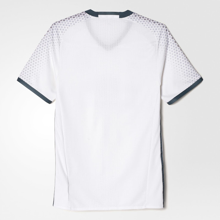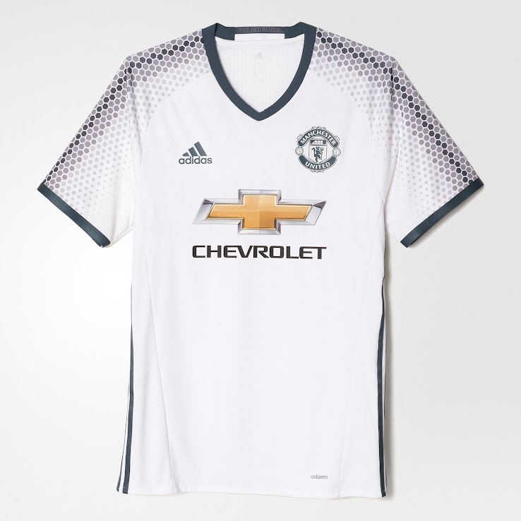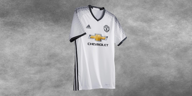 Das Manchester United 2016-17 Trikot, das mit Details in Grau (offiziell Bold Onix) kombiniert wird, ist weiß. Das ungewöhnliche Farbschema wird auch auf dem ManU-Wappen des neuen Manchester United 16-17 Trikots angewandt.