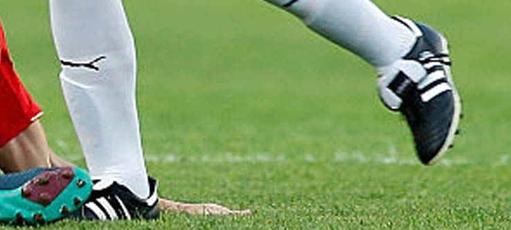 Fabio Aurelios Fußballschuh ist mit Sicherheit einer der besondersten Schuhe, die in diesem Spiel zu sehen waren. Er trug nicht nur einen eingestellten Schuh (Adidas F50 Adizero Prime Leder), sondern färbte sein Schuhwerk auch schwarz, um die Markenzeichen seiner Schuhe zu verbergen. Da große Teile des Obermaterials bereits wieder sichtbar sind, müsste seine "Operation" lange Zeit zurückliegen.