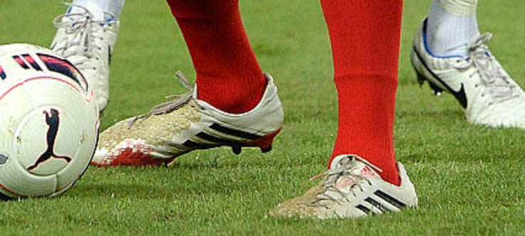 Jason McAteer, der in einer fast völlig schwarzen Version der Adidas Adipure IV Fußballschuhe aufgelaufen ist, die 2008 veröffentlicht wurden, zeigte weitere eingestellte Fußballschuhe.