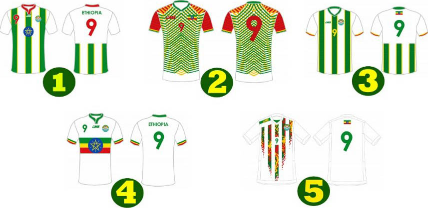 Hier sind die fünf möglichen Designs für das neue Äthiopien 2016 Trikot.