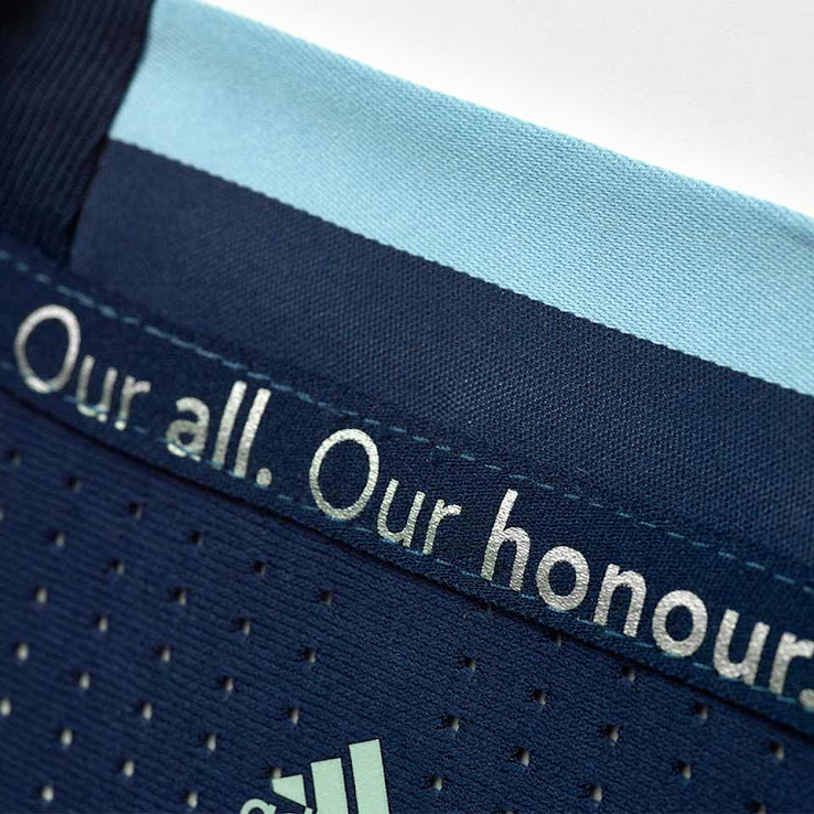 Das neue Vancouver Whitecaps 2016 Trikot hat einen umwerfenden hellblau / blauen Farbübergang mit einem maßgeschneiderten dreieckigen Grafikmuster, das von Vancouvers Wappen inspiriert wurde, während ebenfalls die Berge mit weißen Spitzen, die Vancouver umgeben, widergespiegelt werden.