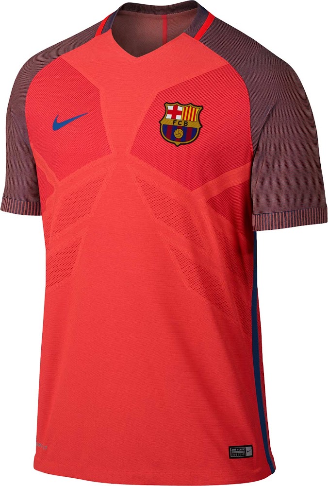 Das neue FC Barcelona 2016-17 Trainings-Trikot, das Mitte Juli 2016 zusammen mit dem neuen lila Auswärtstrikot veröffentlicht wurde, führt ein lebhaftes Design in Orange und Blau ein. Zum ersten Mal ist FC Barcelonas neues Trainingstrikot in einer Version erhältlich, die auf dem neuen Nike Vapor Trikot-Template mit der AeroSwift-Technologie basiert.