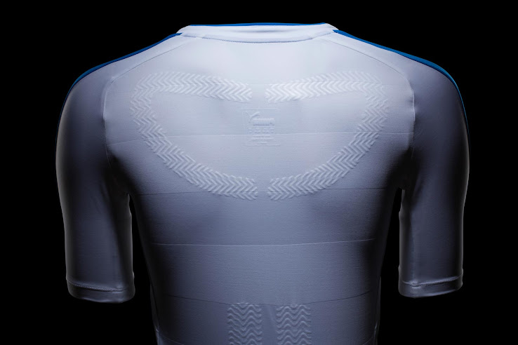 Das Tschechien EM 2016 Trikot, das fast vollkommen weiß ist, weist feine horizontale Streifen auf der Vorderseite auf. Blaue Akzente sind auf dem Kragen, den Ärmeln und dem Saum des neuen Tschechien Trikots vorhanden. Das Puma-Logo auf der Vorderseite des Tschechien EM 2016 Trikots ist in Rot gehalten, wenn auch in einem Ton anderen als dem des Verbandswappens.