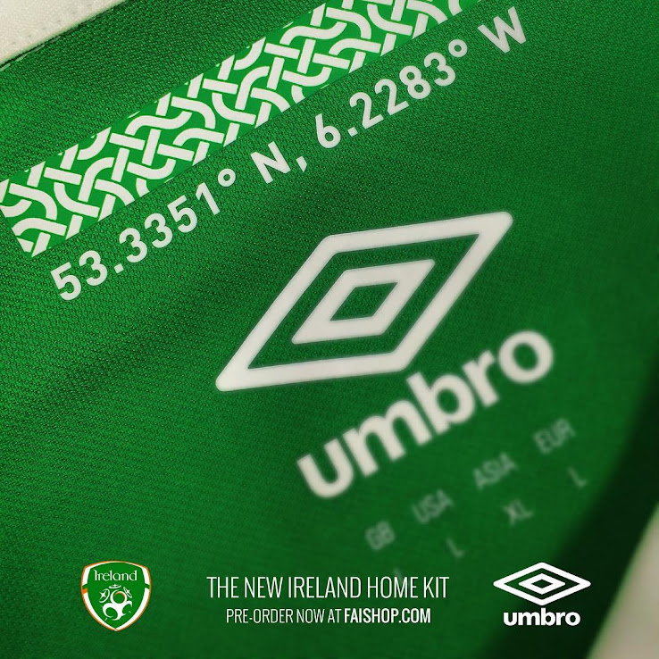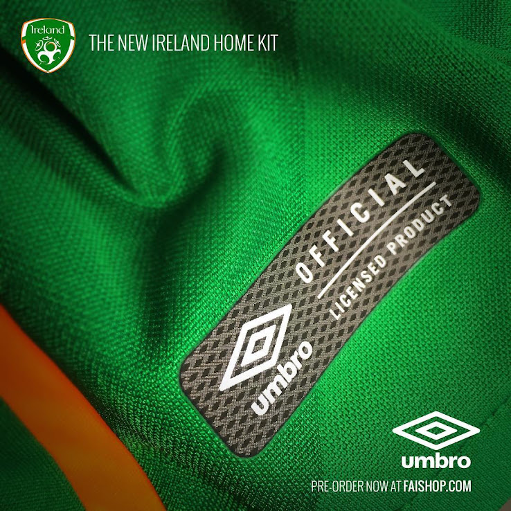 Die Vorderseite des neuen Irland EM 2016 Trikots weist das Logo des Sponsors Three.ie auf, das nur Teil des im Handel erhältlichen Trikots ist und nicht während Spielen zu sehen sein darf. Viele Details runden das maßgeschneiderte Design des neuen Irland 2016 Trikots ab, das mit einer umwerfenden Schriftart abgerundet wird, die von einer typischen keltischen Schriftart inspiriert wurde.
