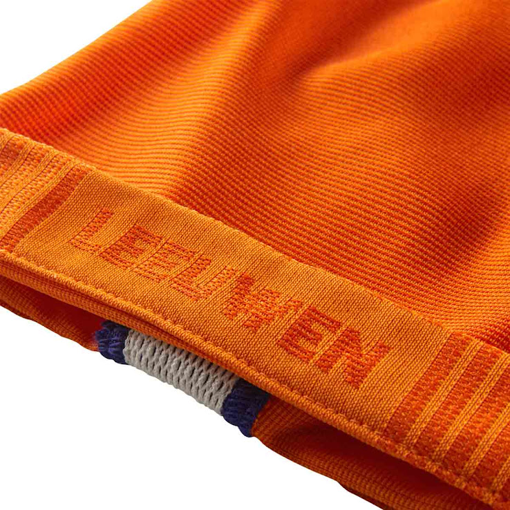 Orange Hosen mit lila Applikationen und lila Stutzen komplettieren das neue Niederlande Trikot.