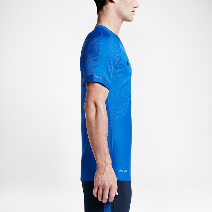 Zudem hat Nike ebenfalls die Pro Hypercool Max Compression Baselayer enthüllt. Das neue Nike Pro Hypercool Max Compression T-Shirt, das entworfen wurde, um zusammen mit den oben erwähnten Oberteilen verwendet zu werden, zeichnet sich durch ein unauffälliges Design aus, bei dem eine schwarze Grundlage mit einem außergewöhnlichen Farbübergang auf den Ärmeln kombiniert wird. Ähnlich aussehende, spezielle entworfene Unterhemden werden diesen Sommer bei der EM 2016 und Copa America von Nikes besten Teams getragen.