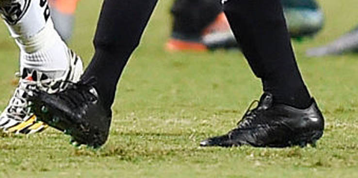 Interessanterweise ist die Außensohle der Robinho-Schuhe vollkommen modifiziert und zeichnet sich durch die Stollenanordnung der Nike Mercurial Schuhe und den gespaltenen Zehenbereich des Nike Hypervenom Phantom aus.