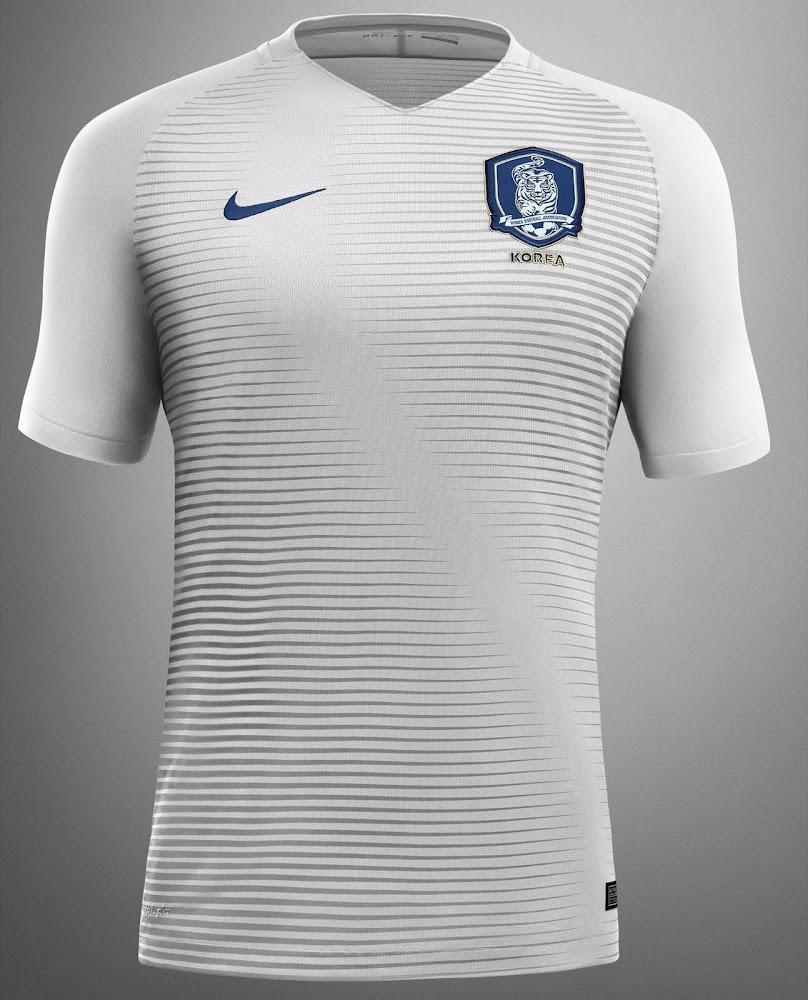 Die neuen Südkorea Trikots, die später in diesem Monat bei der WM 2018 Quali gegen Libanon und im Freundschaftsspiel gegen Thailand debütiert werden, werden über die Qualifikation hinweg getragen. Die Trikots wurden entworfen, um den stürmischen Spitznamen der südkoreanischen Nationalmannschaft, die Taegeuk Warriors, hervorzurufen.