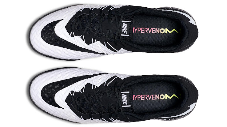 Die weiß / schwarzen Nike Hypervenom X Finale 2016 Fußballschuhe sind ab April 2016 als IC (Halle, Straße) und TF (Kunstrasen) Version für 80 Euro erhältlich.