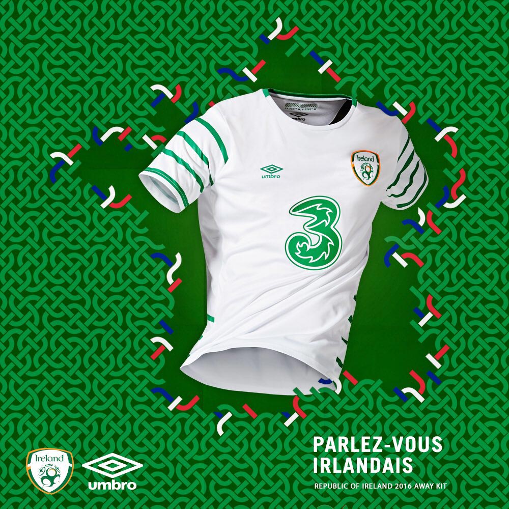Nach den Teasern der letzten Woche hat Umbro Irland gerade eben das neue Irland-Trikot für die EM 2016 enthüllt. Das neue Irland EM 2016 Trikot, das eine weiße Grundlage mit grünen Details kombiniert, hat ein elegantes Design.