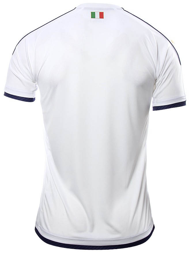 Das Italien 2016-17 Trikot, das sich streng an die Inspiration hält, ist hauptsächlich weiß mit Details in Dunkelblau. Das neue Italien 2016-2017 Trikot weist ein einfarbiges, goldenes Italien-Wappen auf, während der einzigartige Kragen des Originals aus dem Jahr 2006 bei der Neuauflage ebenfalls zum Einsatz kommt.