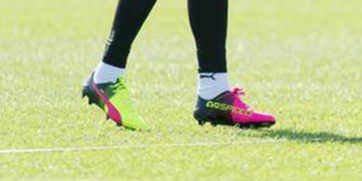 Die neuen Puma evoSPEED EM 2016 Schuhe, die einen ähnlichen Designansatz wie die Puma-Fußballschuhe für die WM 2014 verfolgen, haben verschiedenfarbige Schuhe: der rechte ist gelb, während der linke pink ist.