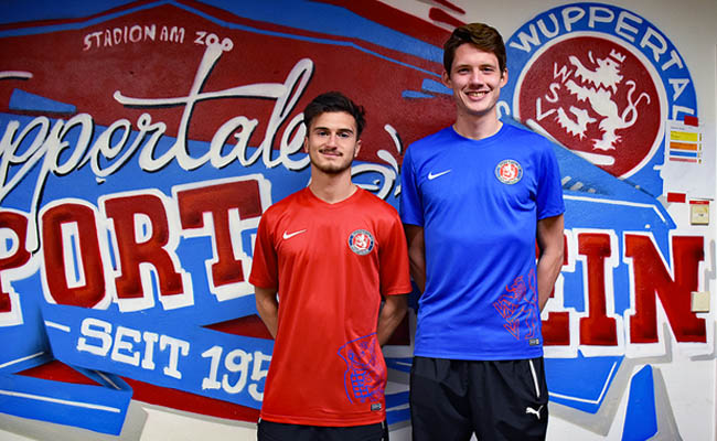 Das sind die neuen Wuppertaler SV 2016-2017 Trikots, präsentiert von Enes Topal und Peter Schmetz.