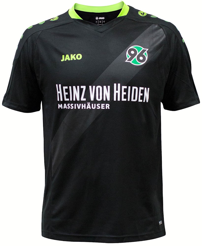 Das neue Hannover 96 16-17 Trikot, das auf dem gleichen Template wie das Heimtrikot fußt, kombiniert die klassische Farbe Schwarz mit grünen Details, woraus ein modernes Design entstanden ist.