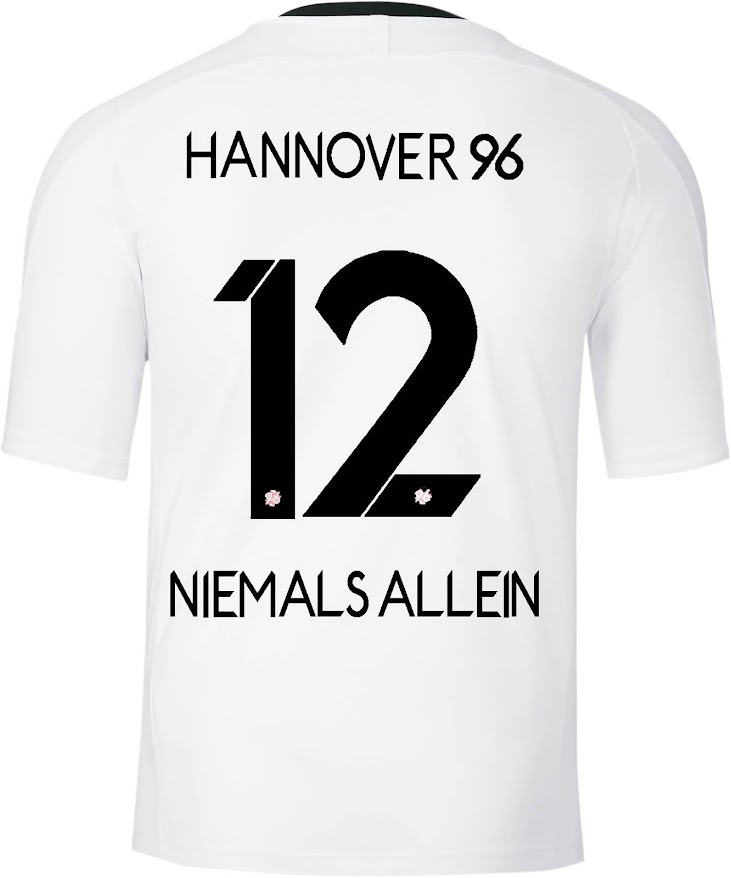 Das neue Jako Hannover-Ausweichtrikot, das wieder gleichen Kragen und Design wie die beiden anderen Trikots aufweist, ist in klassischem Weiß gehalten, wobei eine Schärpe die Farben Schwarz, Weiß und Grün kombiniert.