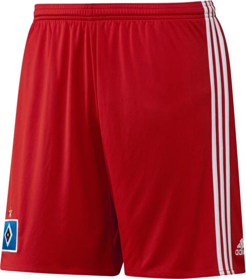 Rote Hosen und blaue Stutzen komplettieren den Gesamtlook des neuen Hamburger SV 2016-2017 Trikots.